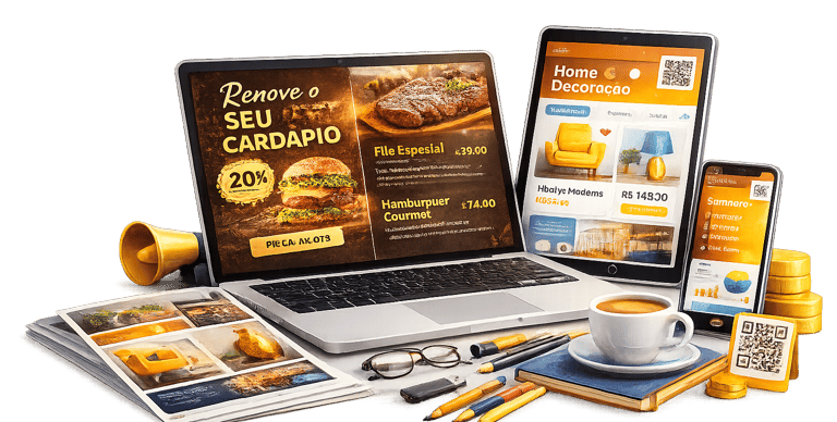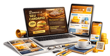 Criamos cardápios, catálogos e apresentações digitais que valorizam sua marca e facilitam a comunicação com seus clientes.
